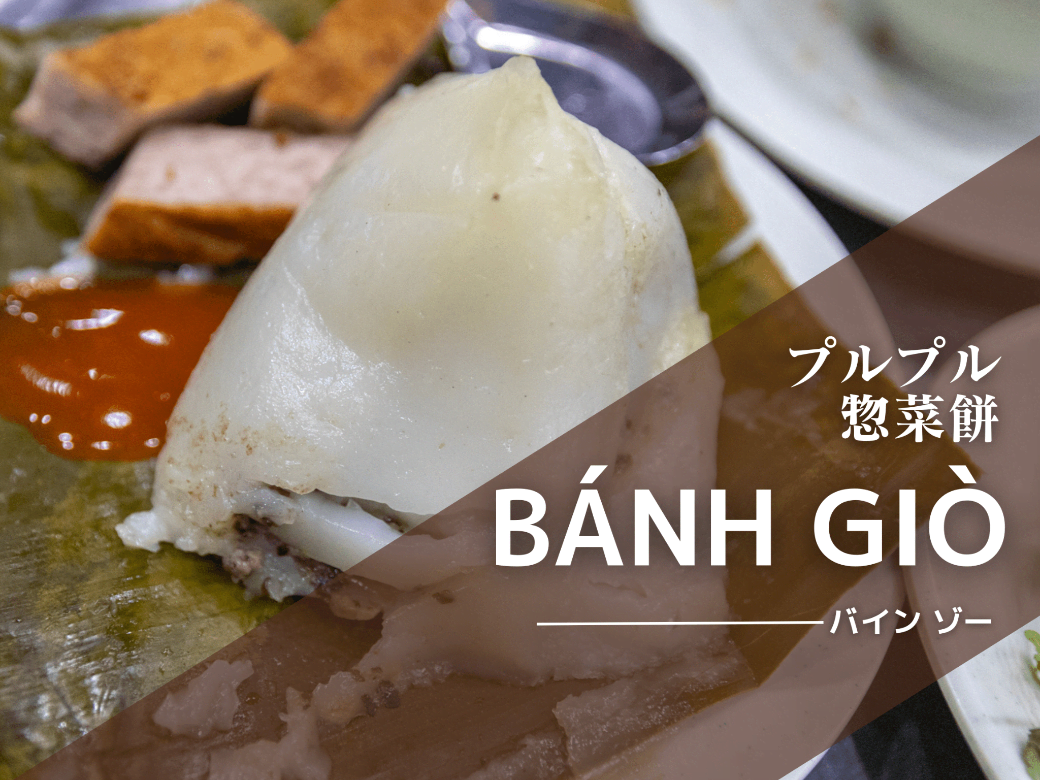 バインゾーはハノイ発の郷土グルメ。とはいえベトナム全土で楽しむことができます。米粉のプルプルのお餅の中に肉やきくらげなどの具材を入れて、バナナの葉でピラミッド状に包んで蒸したもの。日本にありそうでない独特な一品ですが、ヌクマムや醤油、チリソースなどお好みで付けて楽しめる万人受けするグルメです。