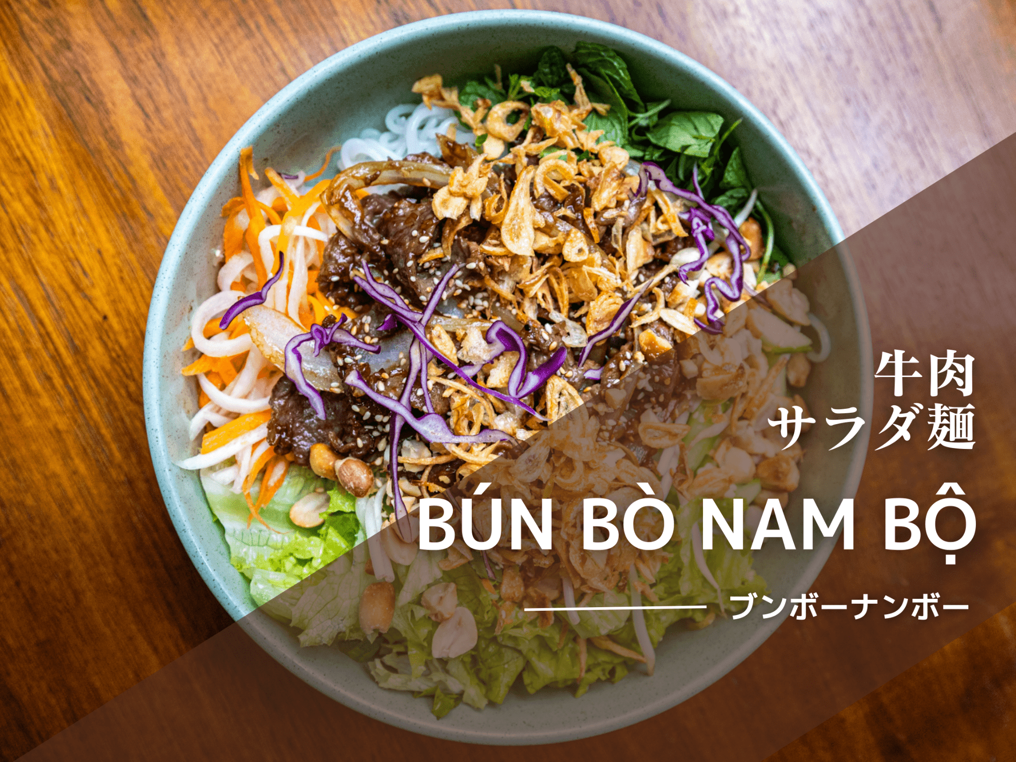 こちらもハノイに来たら試してほしい隠れた逸品。表現するなら牛肉サラダ麺。ブンの上に牛肉や豊富な野菜を加えてヌクマムベースの甘めな味付けがされるためたライトでヘルシーながらしっかり味が効いたおすすめ料理です。街中でもメニューに入っているお店は意外と少ないので見つけたらぜひお試しあれ!