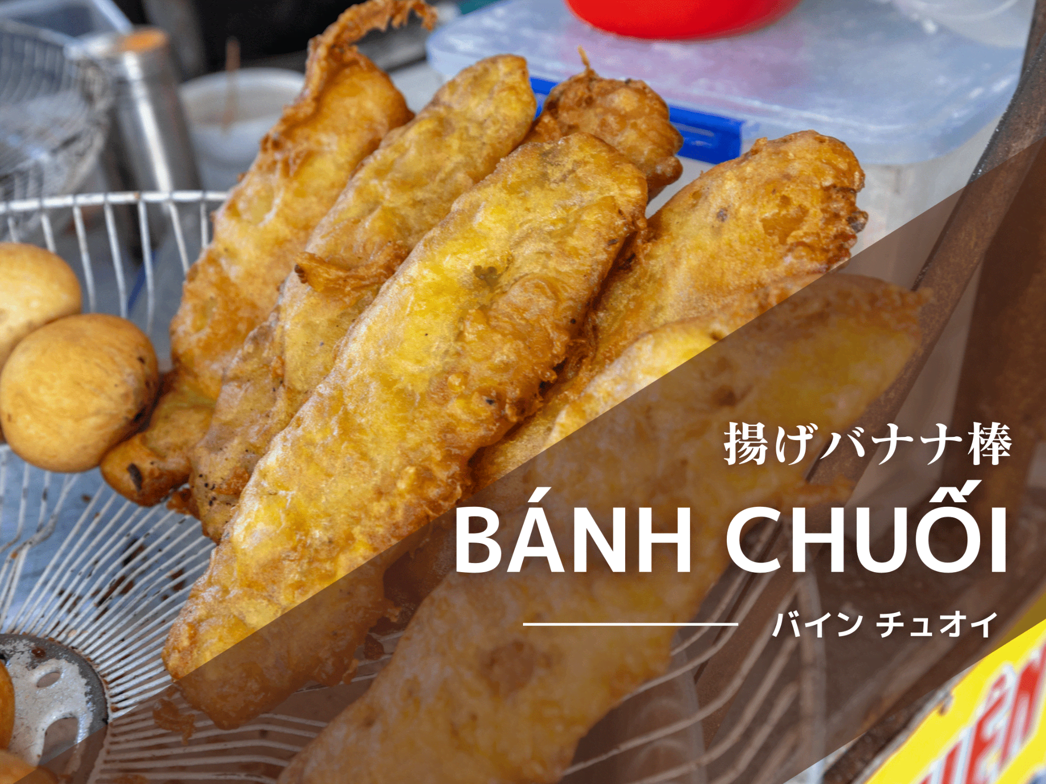 直訳するとバナナケーキですが、イメージは揚げバナナ棒。外はサクサク、中身はバナナのねっとり感と素材そのものの甘味で、おやつにピッタリの食べ歩きグルメです。