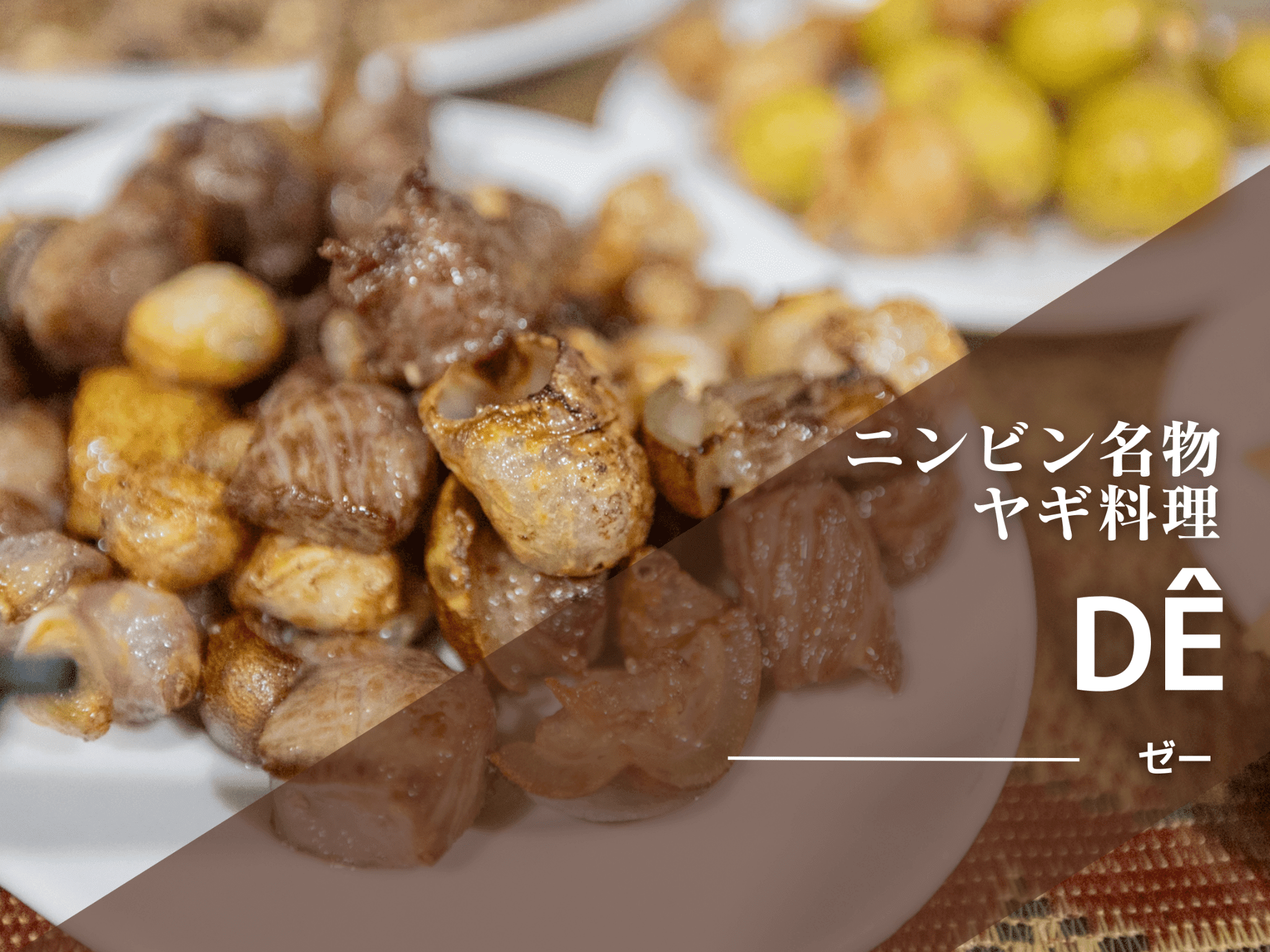 ハノイから行ける人気の観光地ニンビンではヤギ料理が有名です。おそらくチャンアンやホアルーなどのニンビン観光をしているとヤギの放し飼いなどをよく見かけるかと思います。なんといっても魅力は臭みのなさと低脂肪なジューシーさ。ニンニクと一緒に焼いたバーベキュースタイルやサラダと合わせた和え物、ヤギ汁、血をゼリー状にしたインパクトのある料理など余すところなくニンビンではヤギが食べられています。