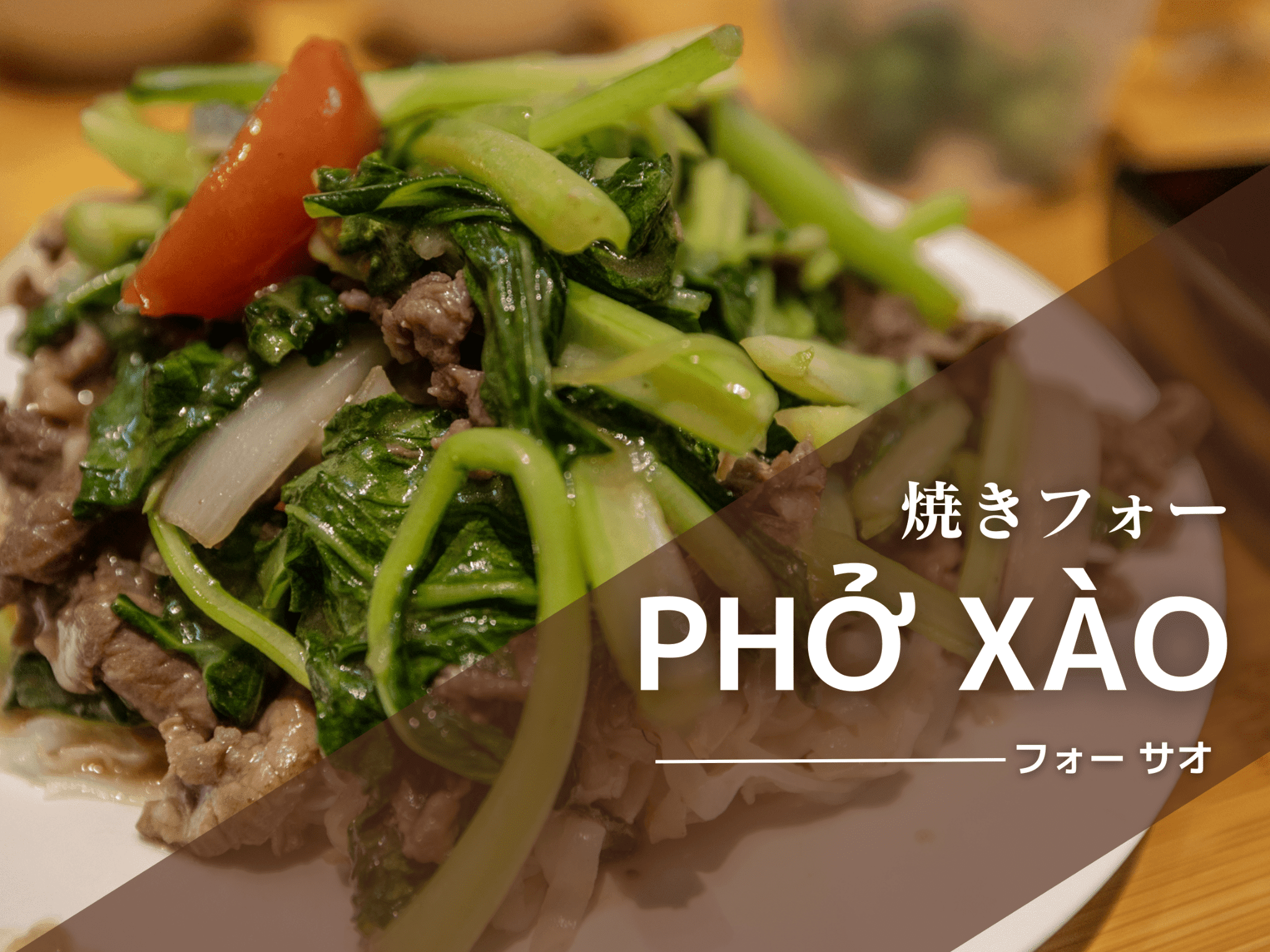 麵料理、フォーはフォーでも汁物ではありません。フォーサオは日本的に表現するなら焼うどん。しかし麺は米粉のフォーで一緒に炒めた牛肉や野菜の汁とよく絡みながら、フォーそのものの味も感じられるおすすめ料理です。Xaoは炒め物を意味し、スープフォーの次に試してもらいたい一品です。