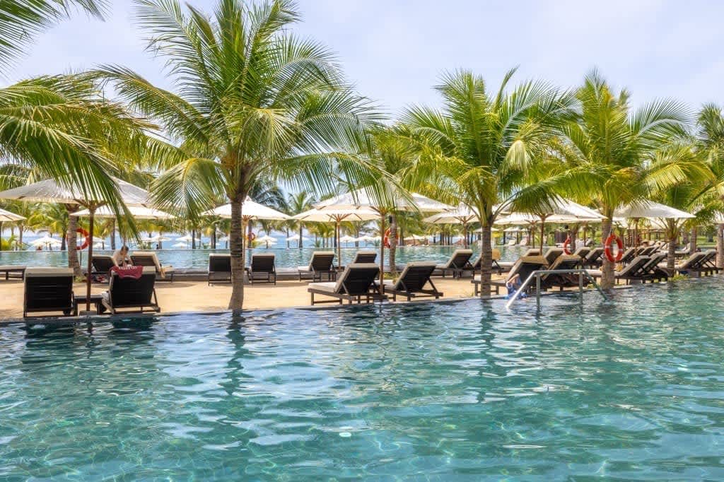空港近くのカムランに2025年5月新しくできた大規模リゾート。ベトナムスタイルを基調にした落ち着いた雰囲気のカジュアルリゾートで8つのレストラン&バー、広々した複数のスイミングプール、スパに加えてニャチャン名物の泥温泉がリゾート内で楽しめるなど設備の充実度が魅力です。2段ベッド付きのファミリー向けのお部屋や子供へのサービスも充実。カムランエリアの中ではお得なお部屋価格と朝食ビュッフェも豪華で夫婦旅や友人旅、ファミリー旅など様々なスタイルに対応します。1日2本運行しているニャチャンの街までの無料シャトルバスでリゾート滞在に加えて街観光もばっちり!ニャチャン旅行のお得充実なリゾート選択肢です。