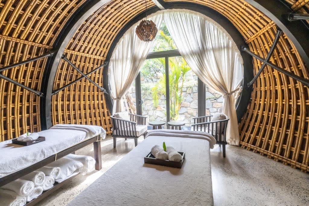 筒状の独特なデザインと竹素材で設計されたトリートメントルームはユニークかつベトナムらしさがあふれ、リラックスの空間が広がっています。
