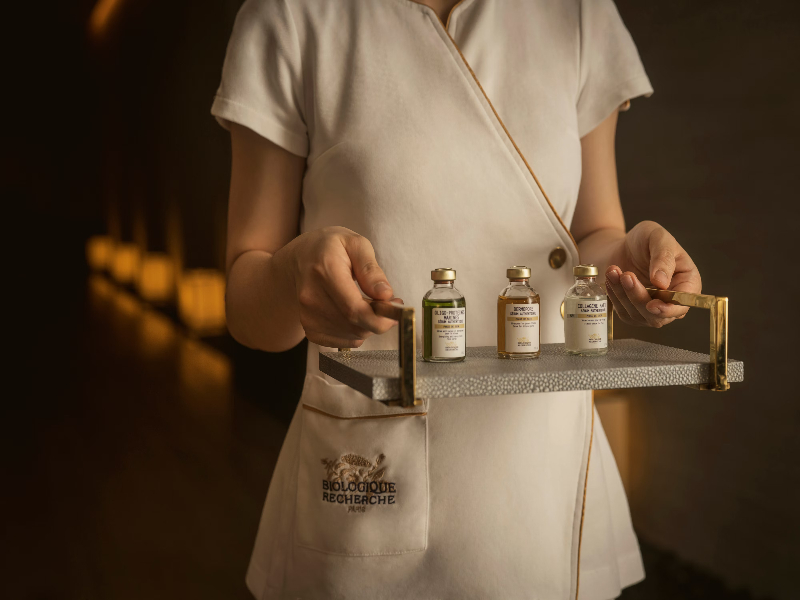個々の肌質に合わせたフェイシャルや最先端スキン分析マシンによるケア、クリスタルエナジーヒーリング、ウェルナミス・バイノーラル振動音療法、ビーチや屋上での瞑想など、多彩なリラクゼーションメニューを提供。著名なBastien Gonzalezによる手足のケアも体験可能です。