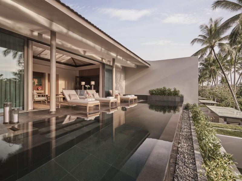 美しく手入れされた庭園を望む広々としたベランダに、屋外シャワーと15㎡のプライベートプランジプール、トロピカルな自然を満喫できるデイベッドを備えた地上階ヴィラ。室内にはハイエンドのエンターテインメントシステム、コーヒーメーカー、無料リフレッシュメントギャラリーを完備。バスルームには深めのバスタブと独立型レインシャワーを設け、心穏やかにリラックスタイムをお過ごしいただけます。