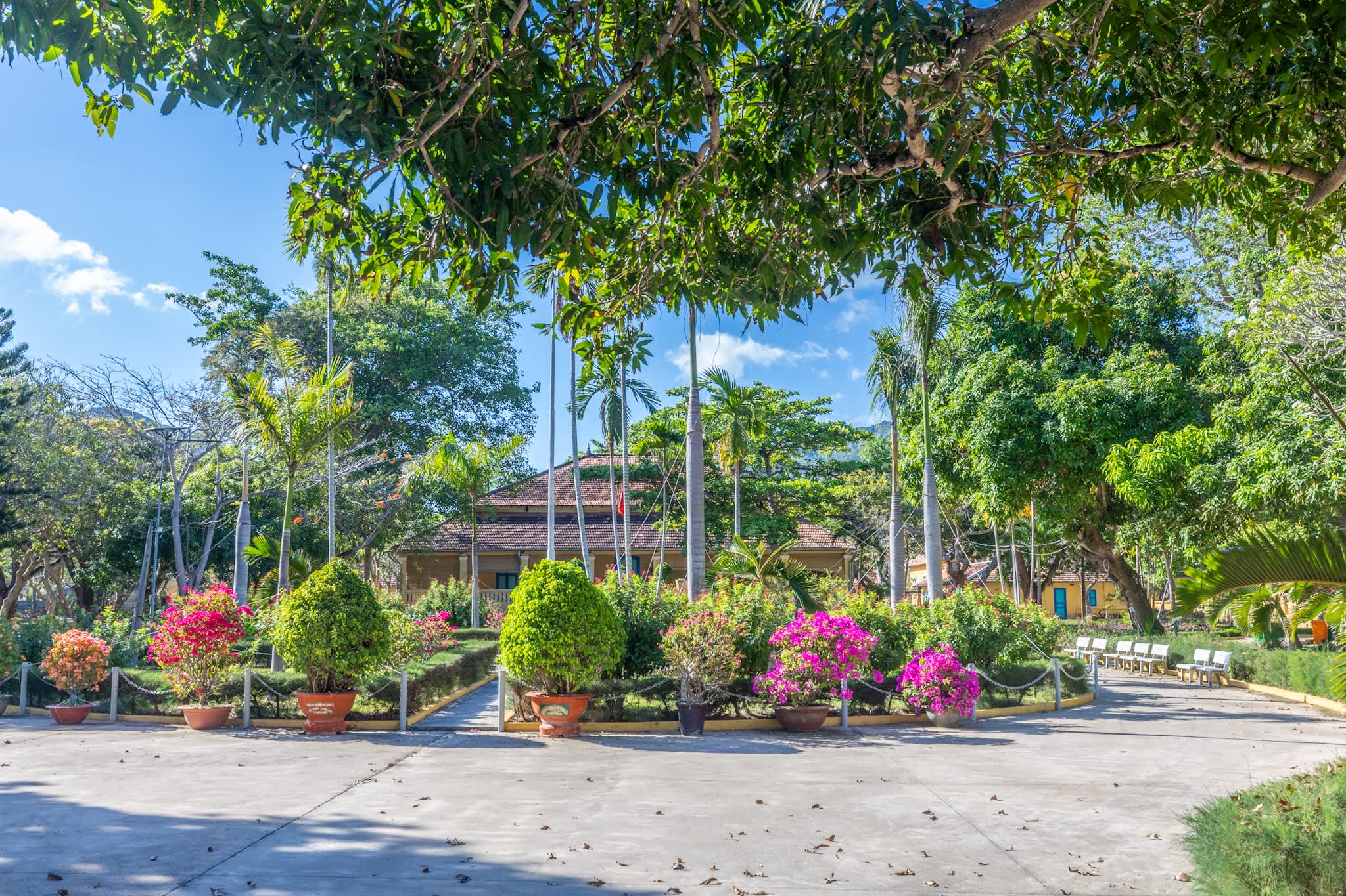 桟橋の真正面、税関の先にあるのが当時のフランス総督の邸宅跡です。黄色の壁とオレンジ屋根、広い敷地に花やアーモンドの木などが手入れされ、雰囲気のある島でも最も美しい建物の一つです。