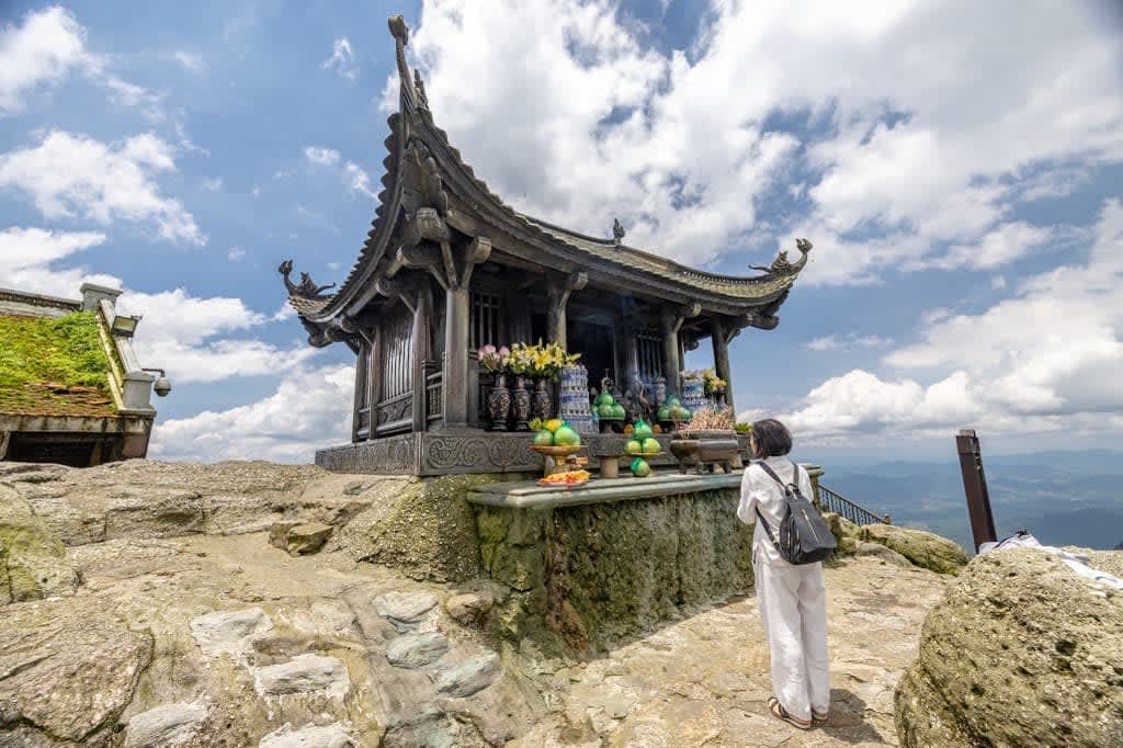 さらにもう一本のケーブルカーを上がって、急な山道と石段を進んだ先、イェントゥ山の頂上にあるのが最もアイコニックなドン寺院。山頂にそびえる銅製の寺院はチャン・ニャン・トン王とその後のお坊さんたちの礼拝所であり、山頂から眺める壮大な景色と美しい自然、寺院の美しさは巡礼者に限らずきつい山登りをしてでも訪れるべきスポットです。