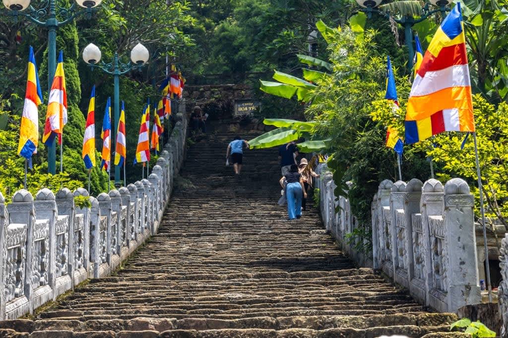 一番のメイン観光地といえるのがイェントゥ山。ハロン湾と同じくクアンニン省にある標高1,068mの山のふもとから頂上にかけて、寺院や仏塔などが点在し、美しい自然の中に石段の巡礼路が整えられたチュックラム仏教の聖地です。麓から頂上まではケーブルカーが2本かけられており、休憩所や売店とともに観光地としても設備が整っています。