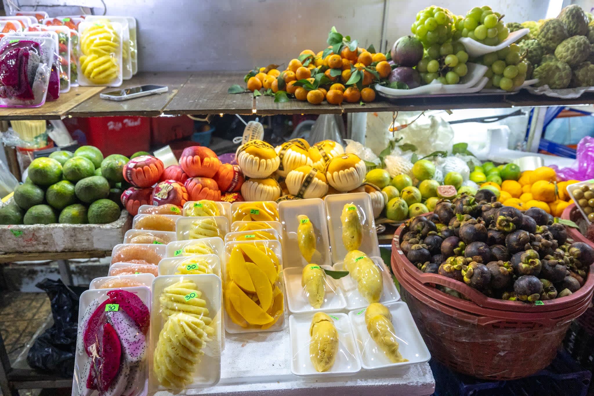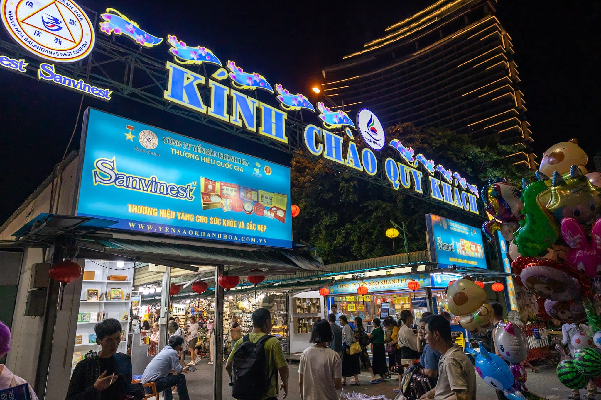 ニャチャンの街の一番中心で毎晩開かれるナイトマーケット。短いストリートに雑貨やお土産、フルーツ屋が並ぶ簡易的なマーケットでゆっくり夕食を楽しむほどの規模ではありませんが、素通りで雰囲気を味わうだけでもニャチャンの夜の観光のマストスポットといえます。何より、ナイトマーケットが営業を開始すると同時にニャチャンの街が夜モードに入っていく、そんな臨場感とナイトライフの入り口的なスポットです。