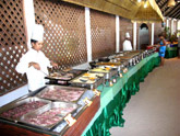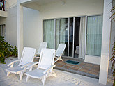 (写真:左) チェックインはこちらで。 周りはサンドカーペットで気持ちい~!