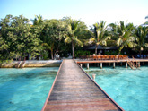 現地ディベヒ語で「黄金の砂州」を意味するランヴェリ。あまり馴染みのない分、他の日本人ゲストと会いたくない人にはおススメ。お部屋は1棟4室2階建ての「スーペリア」のみですが、部屋の中は意外と広くスーツケースを開けても狭く感じません!細長い島のため、レストランやバーは水上に造られてあるので海風が心地よく雰囲気を盛り上げてくれます!!