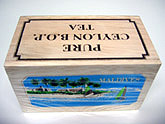 結構迷うところ。 写真は帰りのモルディブ空港のお土産屋さんにて購入。店内ところ狭しと並んでいて色んなデザインのものがありますが、デザインは違えど中身と料金は同じ。(1箱6ドル/2006年5月現在) ただ1種類、写真のように「PURE CEYLON B.O.P TEA」と書いてある箱があり、店員さんに聞いたところ、「質のいい葉を使っているが料金は他の箱と同じ」 とのこと。理由を尋ねたところ、「普通の箱はデザインにお金をかけているが、写真の箱は紅茶の葉にお金をかけている分デザインはシンプルなので金額は普通の箱と同じです。」