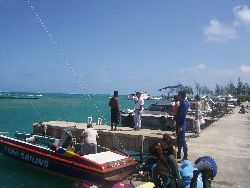 写真(左):ホテルから港まで、車で約5分。そこから、ボートの乗り換え、ポイントまで移動します。トビエイに逢いに、いざ、出発♪