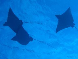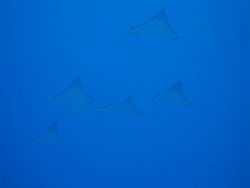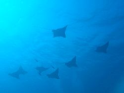 写真(中央):やってきました、サイパン名物トビエイ!!