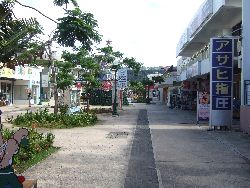写真(左):フィエスタやハイアットの前、お店が並ぶ通りを歩いて見ました!!