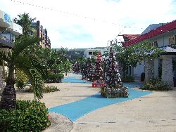 写真(左)(中央):サイパンの街中は、クリスマスムード満点!!でも、ヤシの木とクリスマスツリーって…新感覚です。。笑