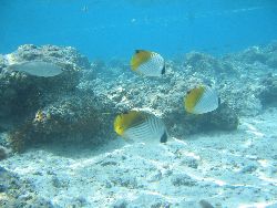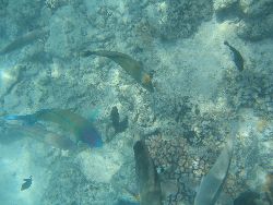 写真(中央)(右):島のすぐ前のビーチにも、いっぱい魚がいます!!ビーチ前のシュノーケリングだけでも、結構楽しめますっ♪