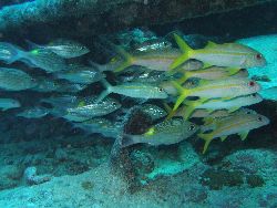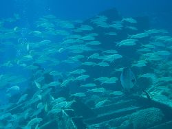 写真:流れが当たる舳先のほうは、魚達がわんさかっ!!