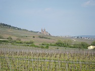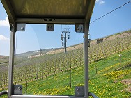 帰りのゴンドラリフトは眼下にぶどう畑が間近に迫ってくる光景を見ることができ、進行方向左手遠くには「エーベルバッハ修道院」も見ることができます。