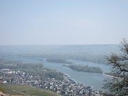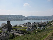 眼下には水面輝くライン川とライン川の両岸に小さな街が広がっています。もちろん、ぶどう畑も♪