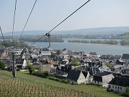 ゴンドラリフトでどんどん上がっていくと、進行方向左手にリューデスハイムの街並み、右手に一面のぶどう畑が広がります。この時期、当然ぶどうの実はまだ付いていません・・・。苗木だけが一列に並び、芽が出るのを今か今かと待ちわびている時期です。