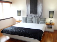 メインベッドルームはキングベッド1台。ハネムーン、カップルにぴったり。大人っぽくなっています。2ベッド、3ベッドルームならご家族やグループにどうぞ!