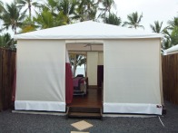 半屋外のスパは、テントの様なお部屋。窓からは海が見えます!
