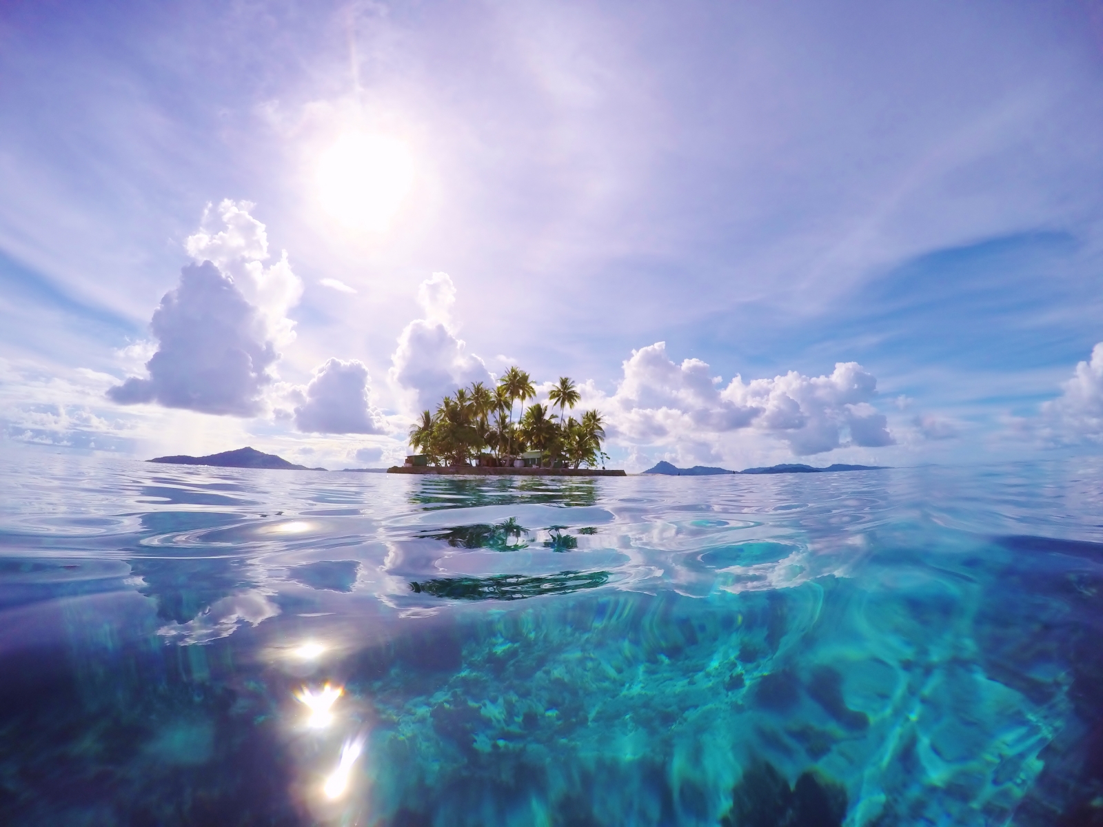 島には個室2つ&大部屋1つを備えたロッジと、最低限の設備があるだけ!あとは360度見渡す限りの広い空と青い海に囲まれています。
