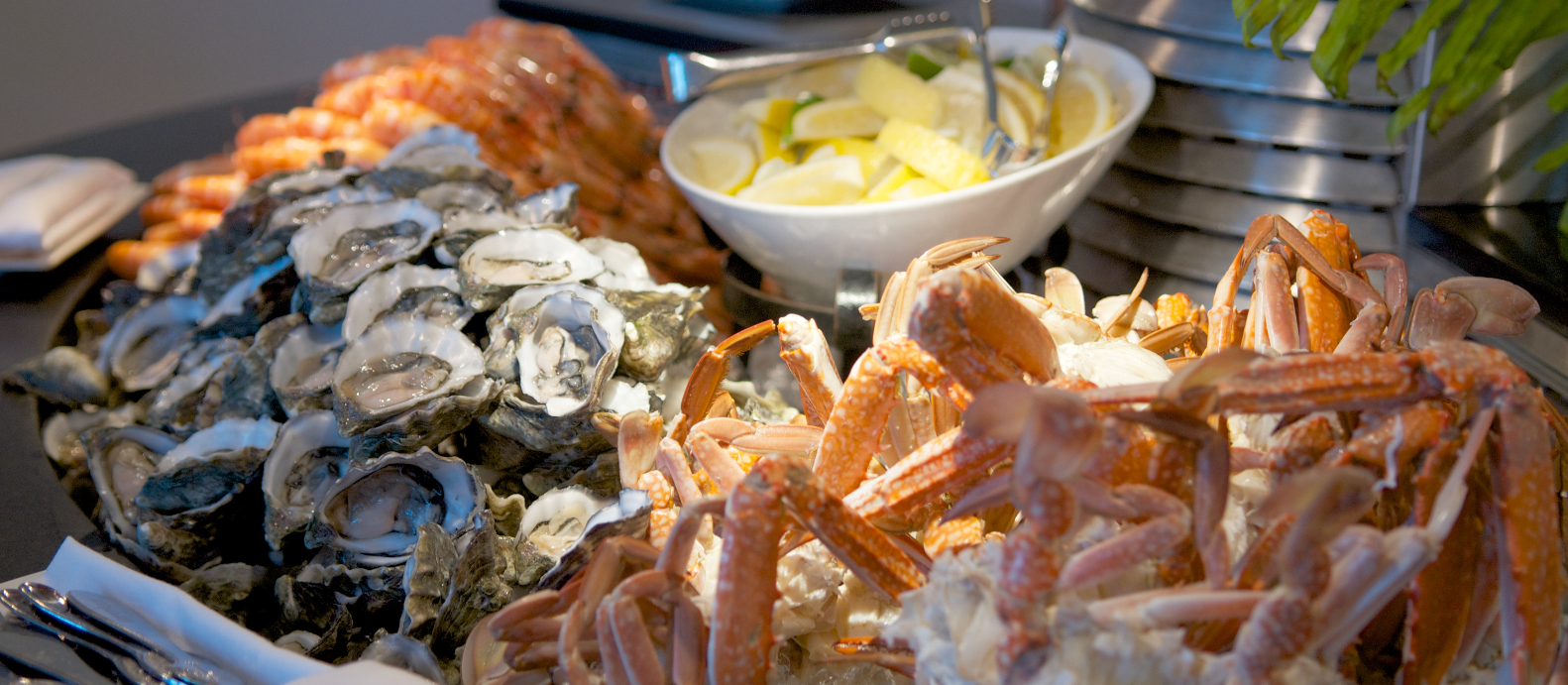 エビや牡蠣、カニなどの新鮮なシーフードビュッフェをお楽しみください。