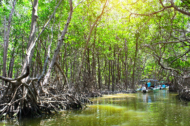 パドルボードを使いマングローブ探検!ハワイを発信源に世界中に広がっている新しい水遊びです。バランス感覚を使うためエクササイズ効果もあり!初めての方は「立てるかな?」と心配されますが、パドルボードは座ったまま漕いだり、ボードの上に立ったり、寝転んだりいろいろな楽しみ方があります。