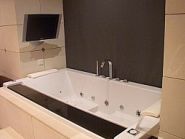 メインのベッドルーム2つにはジャグジー付きのバスタブ。お風呂につかりながらテレビがみれるので、いつまででも入ってられそうです。ちなみに、1つのベッドルームにはジャグジーは設置されていませんが、代わりに円形のマッサージベッドが利用できます。