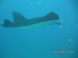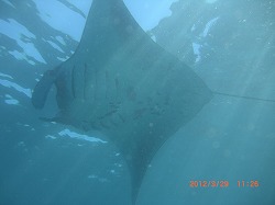 前日の豪雨の影響もあり、透明度はあまり良くありませんが、ブラックマンタ発見!!