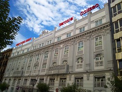 グッゲンハイムを歩き回ったおかげで足が疲れてまいりました。幸い建物の中は冷房が効いていましたが、外に出ると、16:30でしたが残暑が厳しい日でした。おまけに喉が渇いてきたので、ミネラルウォーターを大量に仕入れるべく、Abando駅前の、El Corte Ingresまで歩くことにしました。ご存知、スペインの大抵の街の玄関口にあるデパートです。日本の感覚では食料品売り場はB1階ですが、こちらでは6階にあります。そこで、「今すぐに飲むもの」と「夜ホテルで飲むもの」と「明日の朝列車の中で飲むもの」と3種類の水を購入、自分の嗜好として、このような場合はアグア・コンガスと決まっております。日本のコンビニにも常置して欲しいものです。