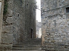 ジローナのカテドラル・ジローナのロマネスク様式の教会・ひっそりとした路地
