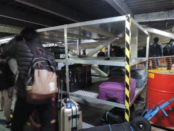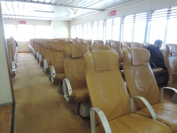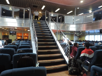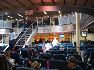 一気に人がなだれ込むので我先にと皆が進んでいく中、荷物置場にスーツケースを置きいざ船内へ。