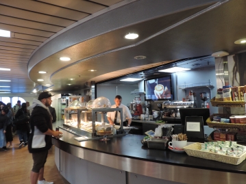 カフェには美味しそうなスムージーやフレッシュジュース、ハンバーガーやホットドッグがありテイクアウトも可能なので、購入して船内で食べるののもお勧めです!