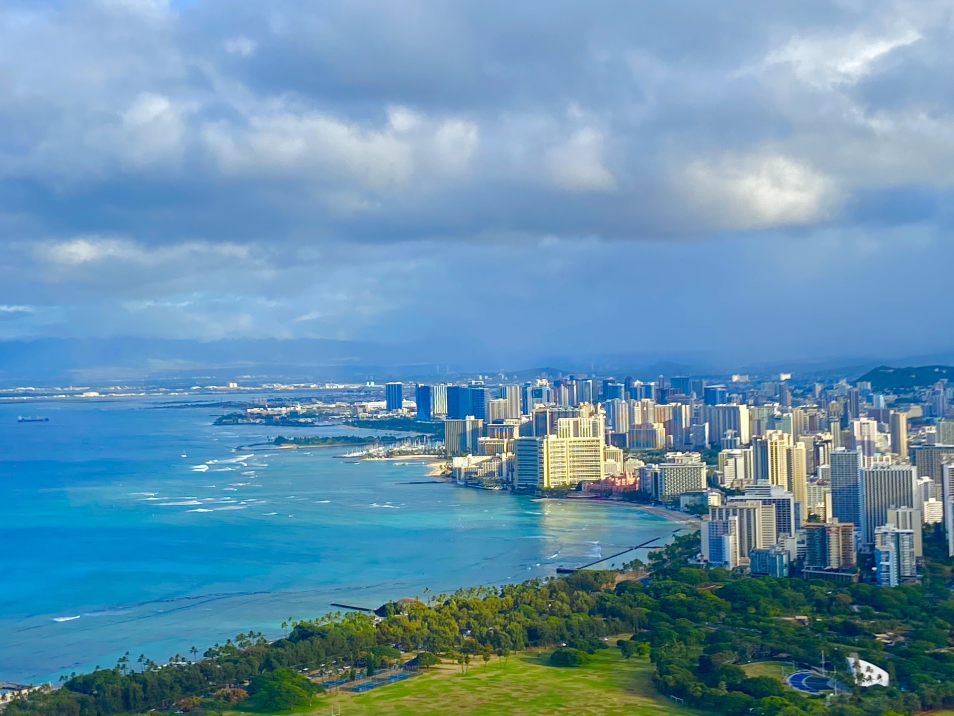 山頂からはホノルルの街や海岸線を360度の美しいパノラマで一望でき、息を飲むような景色を楽しめます。