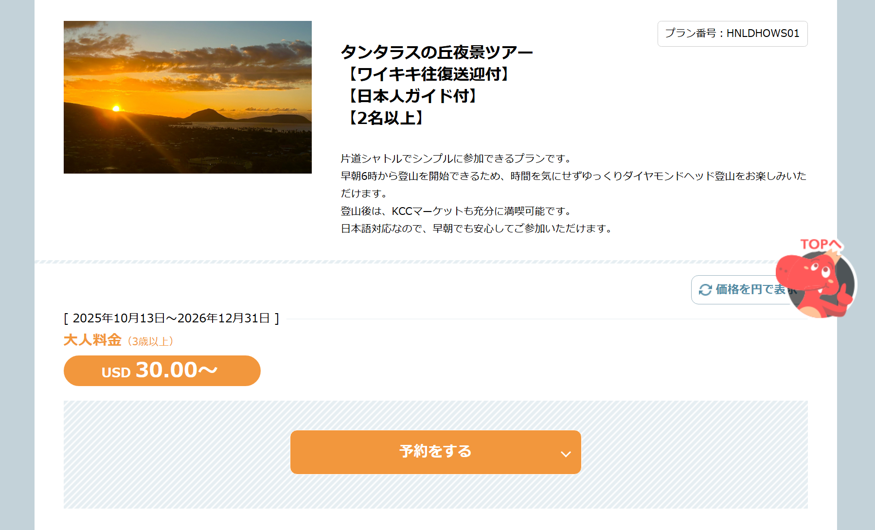 ご予約/QRコードを取得していただいてから、こちらの「ダイヤモンドヘッド片道シャトル」を申し込みください。