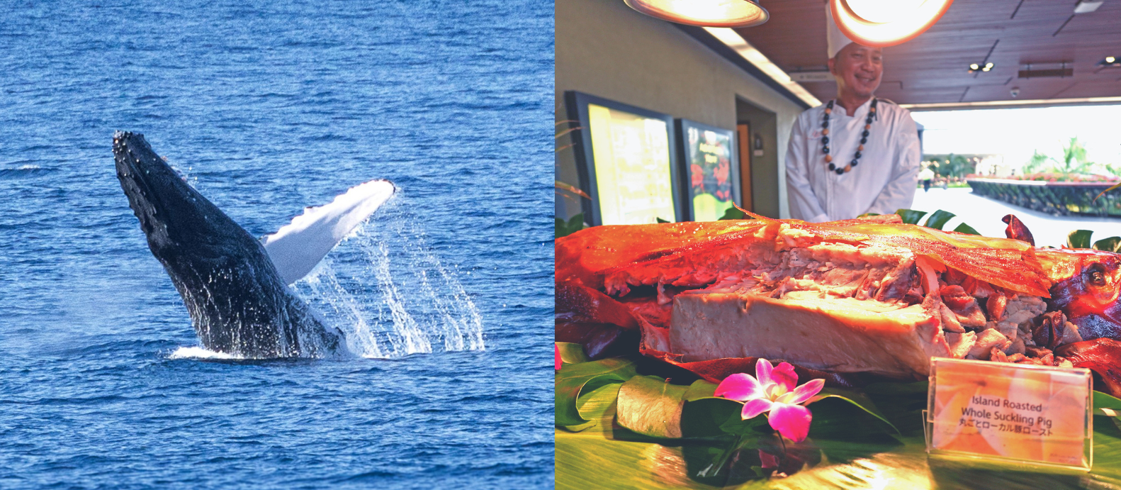 ハワイの冬だけの人気体験「ホエールウォッチング」と「ルアウ・ビュッフェ」をセットで楽しめるお得なコンボプランです。
