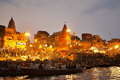 ガンジス川での日没の儀式アルティーへご案内いたします。