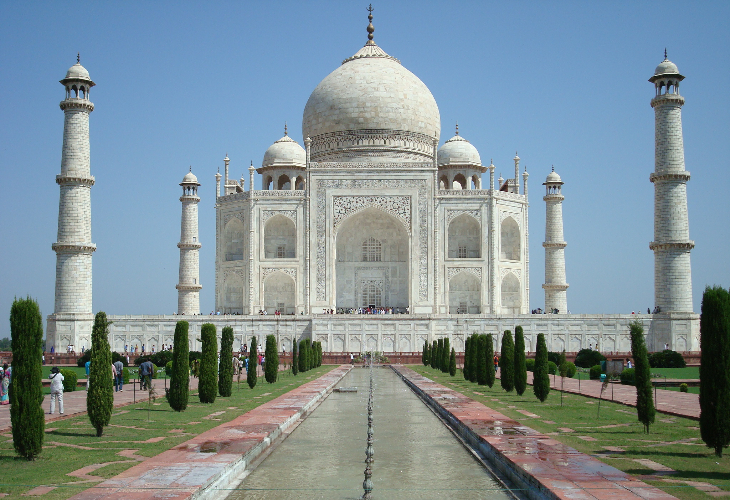 白大理石が美しいタージ・マハルは、愛妃ムムターズ・マハルのためにシャー・ジャハーン皇帝によって建てられました。