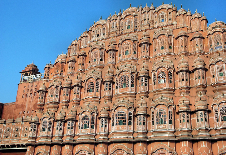 象のタクシーにて世界遺産アンベール城(入場)、風の宮殿(下車)、シティパレス(入場)、ジャンタル・マンタル(入場)へご案内します。