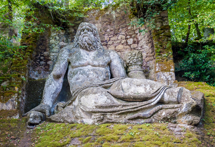 苔むした状態で点在する怪物の彫刻と生い茂る自然が調和し、不思議な世界観を演出する類い稀な公園です。