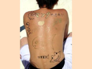 ”ひっち” がお祝いの日焼けアートをやると言うから・・ 「何やってるの?」 イタリア人に取り囲まれた~