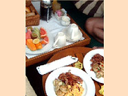 ビラの下にはエイがよくごはんをを食べに来てました。グーンビラに泊まると、1度だけ朝食のルームサービスが頼めます。これがかなりのボリュームでしたが、デッキで食べる朝食はなかなかいいものです。