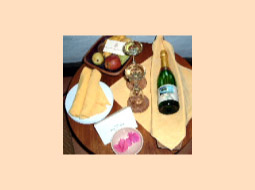 テーブルにはハネムーナーサービスのフルーツとシャンパンが置かれていました。
