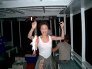 最初はなかなかお魚釣れなかったのですが、小さめのものからまあまあ大きなお魚3匹釣れました。初めての釣りだったので、嬉しかったぁ。釣った魚は次の日好きなように調理してくれ、食べられるとのことでしたが、私たちは遠慮しました。また、ナイトフィッシングというだけあり、サンセットがとっても感動的でした。星空は東京では見たことないくらいきれいでした。