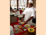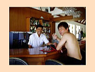 スリランカ人のバーボーイ。「熱があるんだよ」って言ったら「良い薬があるから来い」って作ってくれた特別メニュー。ライム+タバスコ+塩のお湯割りですが、どっと汗が出て熱が下がり食欲も出てきました。メニューリストには無いので「グッド メディスン プリーズ!」とオーダーして下さい。値段は・・・チップのみです。