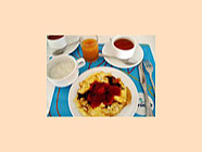 ボリフシの朝食は意外にも質素でした。飛行機で食べ過ぎたのでちょうど良いかな?と思う事にしたのは朝だけでした。昼食と夕食はたくさん出てきましたよ。フルーツジュース・コーヒーor紅茶・目の前で焼いてくれるワッフル。パンとチーズ。ヨーグルトやシリアル。あと、お粥。