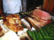ビーチの明るいところがバーベキューの開催場所。ディナーは食べきれないほどの料理ですが、僕は体調が悪く食べたのはフルーツ一個・・・
